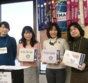 そして、通常例会。Mさんによるジョークセッションにより、大盛り上がりで会が始まりました。即興スピーチのテーブルトピックセッションは、Hさんが初めて進行を担当。今回の例会テーマにちなみ「2016年の振り返り」をテーマに質問を行ないました。また3本の準備スピーチも大変素晴らしいものでした。Mさんによるデビュースピーチは、彼女の専攻について。Kさんのスピーチは彼の仕事、電話でのクレーム対応方法について。Nさんのスピーチは、うさぎと亀をモチーフにした内容でした。総合論評者や論評者も含め、すべてのメンバーの協力により、例会はスムーズに進行しました。