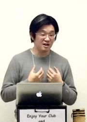 The second speaker, TM H, is an excellent speaker who won the 3rd place in the Japanese Division Contest this spring. This was his first speech since the contest, in which he talked about the ‘Mindfulness’. With his strong power of eyes, which is his trademark, he sent us a message to the effect, ‘Forget about the past and the future, focus on what’s happening NOW. And DO NOT JUDGE.’