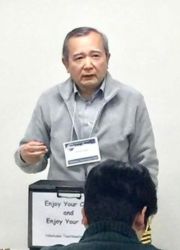 The 641st Official Meeting of Yokohama Toastmasters Club was held on April 15th, 2017, at Hatoba Kaikan inside Zou-no-hana Park, which was fragrant with beautifully blooming spring flowers. Around 30 people attended the meeting, which includes six guests, Area Manager TM J, and our Vice President of Education who joined from England (via Zoom system) this time with his friend (he joined from Paris at the last meeting).