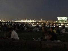 And one more thing at the day, there was fireworks watching event after the meeting. We enjoyed fireworks with drinking and relaxing on a lawn, and we got really lively!